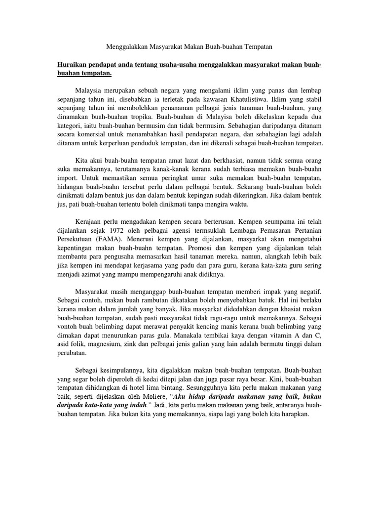 Huraikan Pendapat Anda Tentang Usaha Usaha Menggalakkan Masyarakat Makan Buah Buahan Tempatan