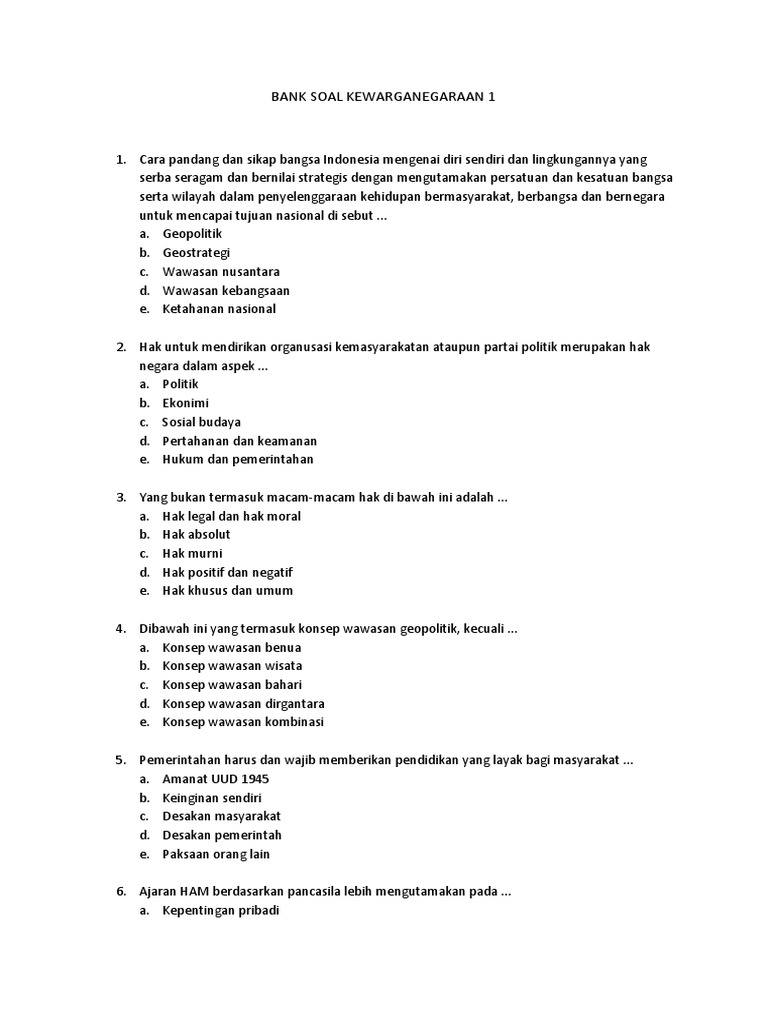 Bank Soal Kewarganegaraan 1 Docx