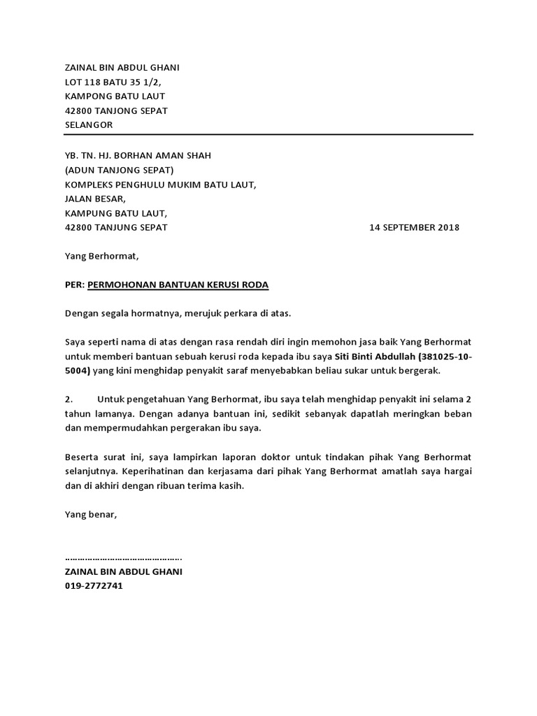 Surat Bantuan Kerusi Roda