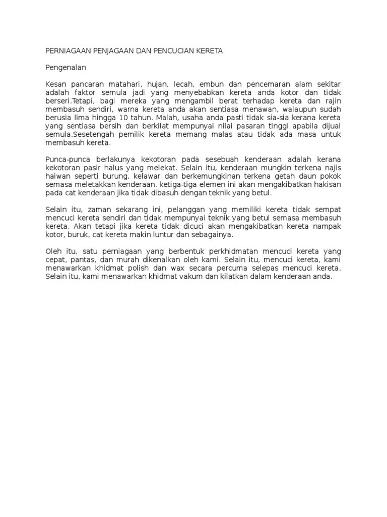 Rancangan Perniagaan Cuci Kereta Pdf