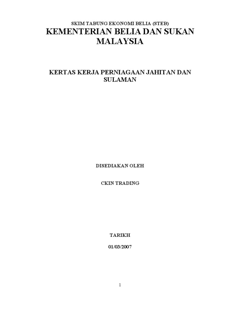 Contoh Terbaik Kertas Kerja Rancangan Perniagaan Untuk Pinjaman Tekun