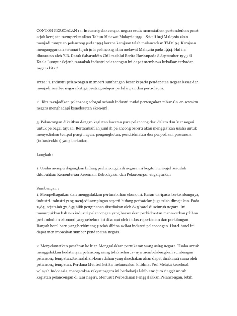Contoh Persoalan Karangan Perlancongan