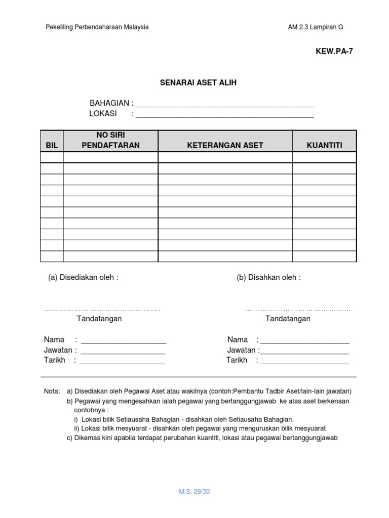 7 Kew Pa 7 Senarai Aset Di Lokasi Doc Pekeliling Perbendaharaan Malaysia Am 2 3 Lampiran E Kew Pa 7 Senarai Aset Alih Kerajaan Bahagian Lokasi Bil Course Hero