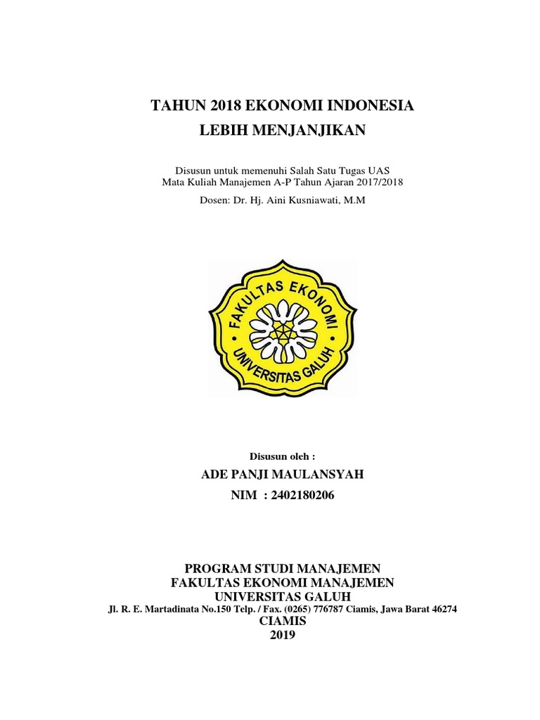 Makalah Ekonomi Indonesia Tahun 2018 Lebih Menjanjikan