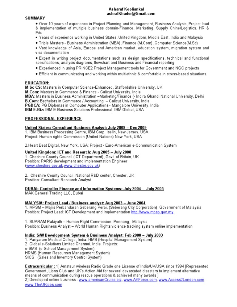 Cv For Uk College Master Of Business Administration Business