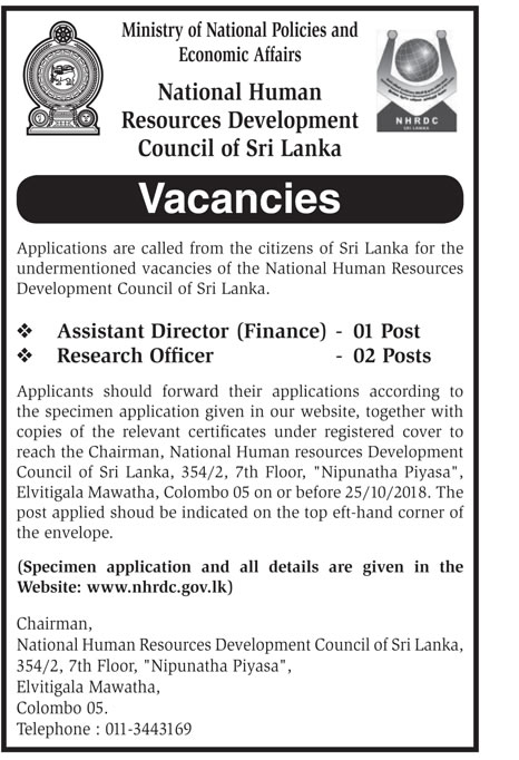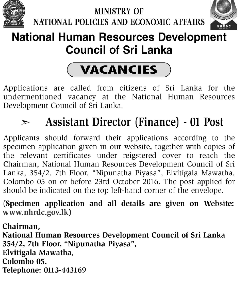 Sri Lankan Government Job Vacancies At National Human Resources Development Council Of Sri Lanka For Human Resources Government Jobs Human Resource Development