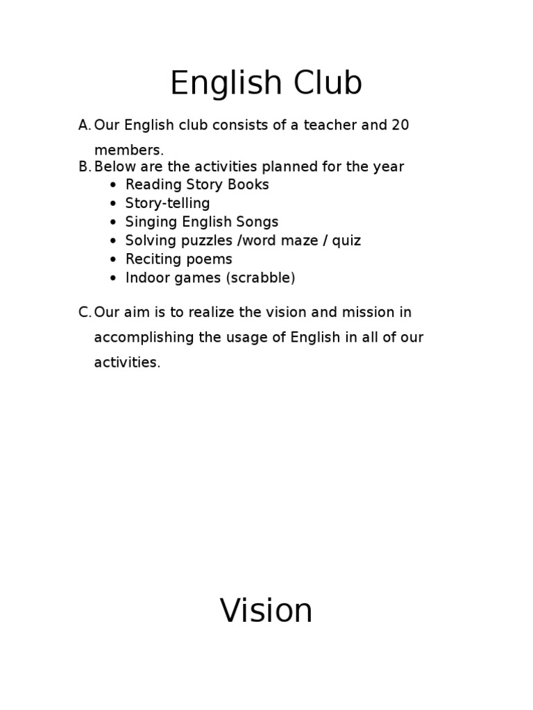 Doc Perancangan Aktiviti Persatuan Bahasa Inggeris Tahun 4 2015 Rohani Ibrahim Academia Edu