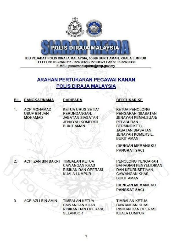 Siaran Media Arahan Pertukaran Pegawai Polis Diraja Malaysia Royal Malaysia Police Facebook