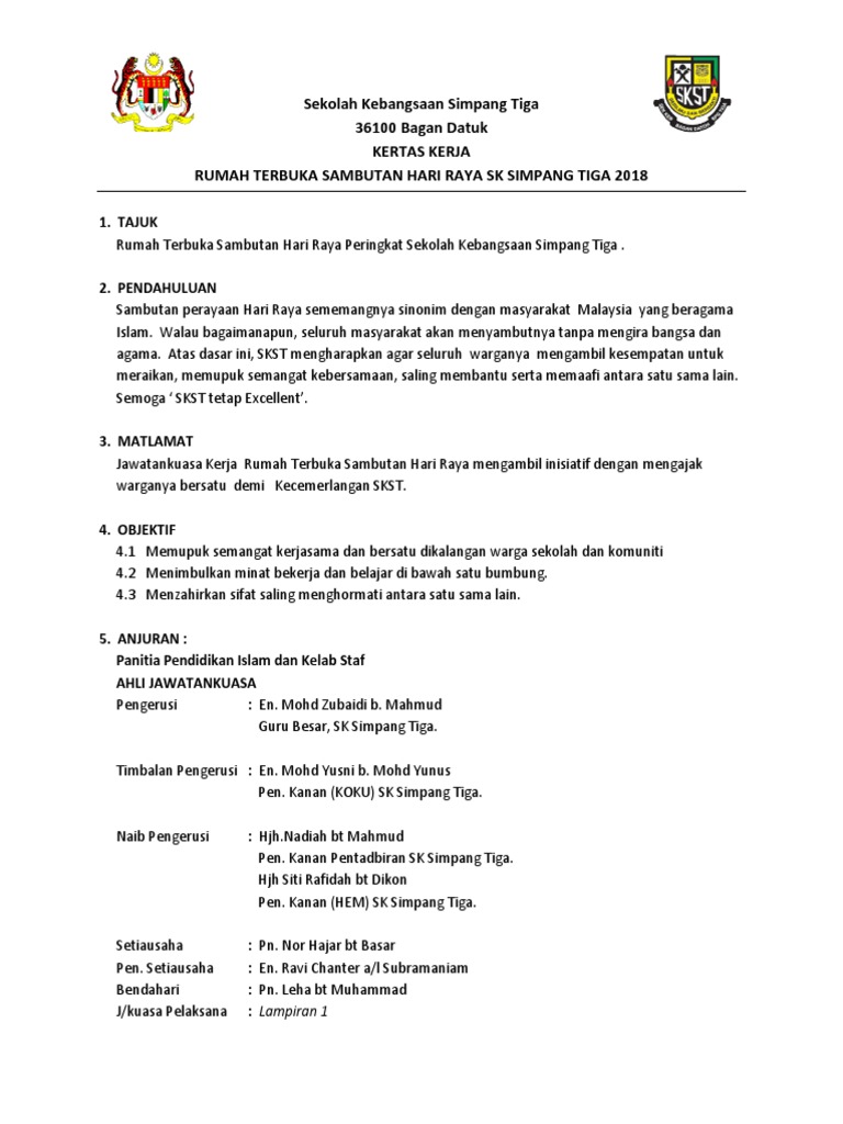 Doc Kertas Kerja Program Sambutan Hari Raya Aidilfitri Peringkat Sekolah Kebangsaan Kampung Busut Baru Zaifi Ras Academia Edu