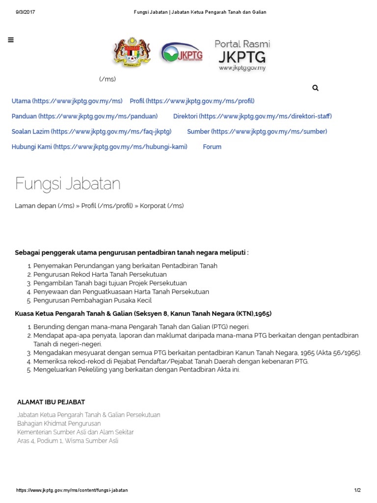 Fungsi Jabatan Jabatan Ketua Pengarah Tanah Dan Galian