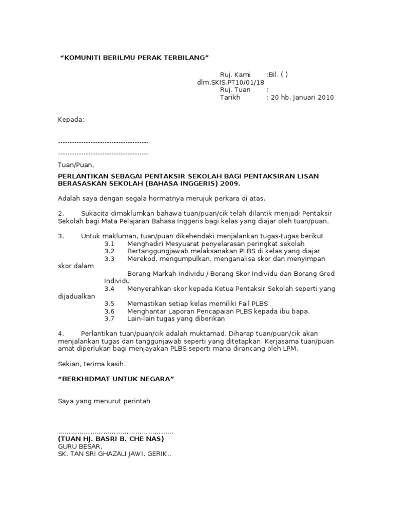 Contoh Surat Lantikan