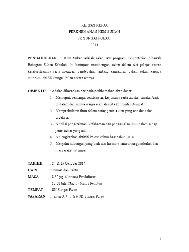 Contoh Kertas Kerja Sukan