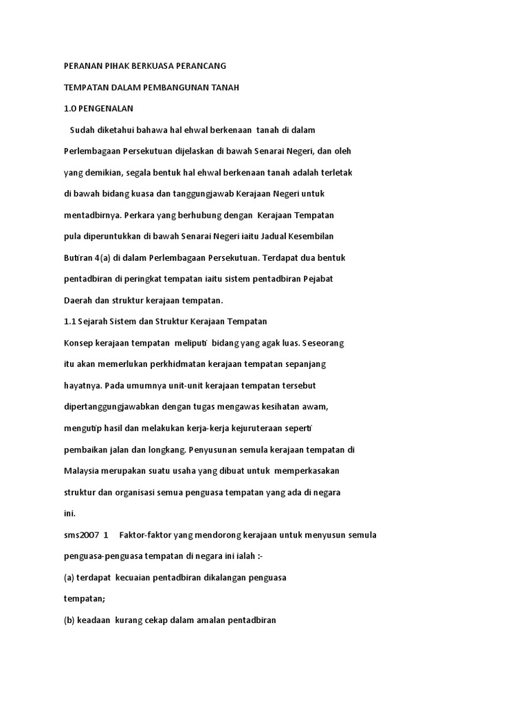 Peranan Pihak Berkuasa Perancang Tempatan Di Bawah Bidang Kuasa Dan Tanggungjawab Kerajaan Negeri Pdf Document