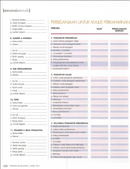 Senarai Semak Perbelanjaan Untuk Perkahwinan For Ladies Side Page 2 Wedding Tips Wedding List Wedding