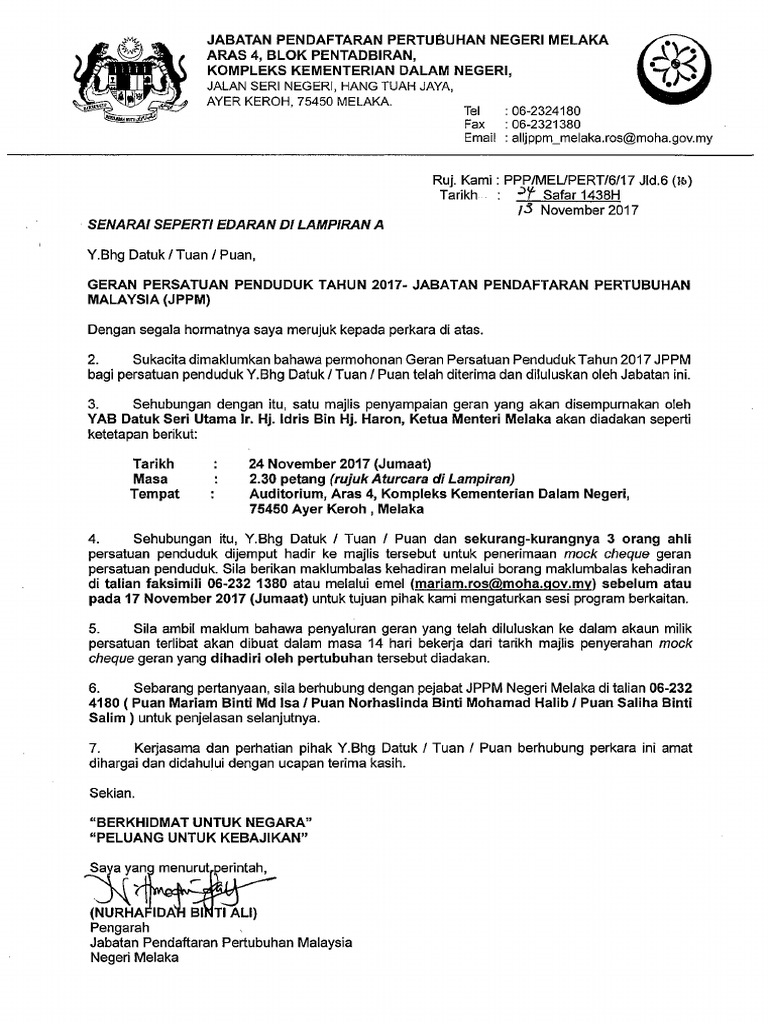 Permohonan Geran Persatuan Penduduk Jabatan Pendaftaran Pertubuhan Malaysia Jppm Facebook
