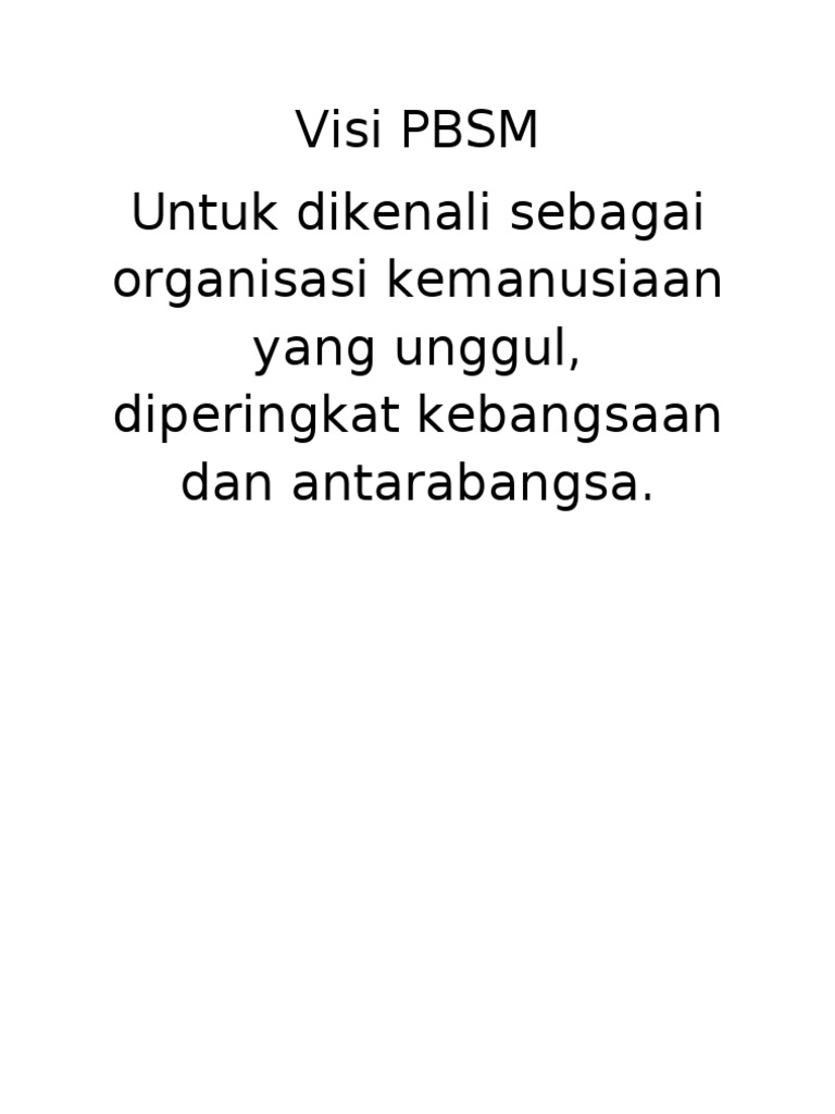 Visi Pbsm Untuk Dikenali Sebagai Organisasi Kemanusiaan Yang Unggul Diperingkat Kebangsaan Dan Antarabangsa