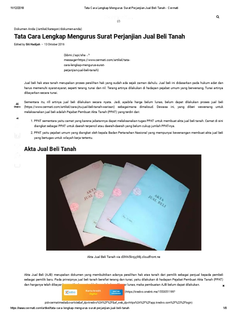 Tata Cara Lengkap Mengurus Surat Perjanjian Jual Beli Tanah Cermati Pdf