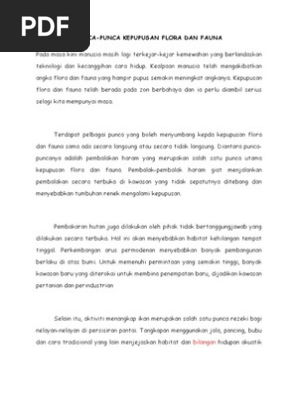 Punca Kepupusan Hidupan Flora Dan Fauna Di Malaysia Pdf Document