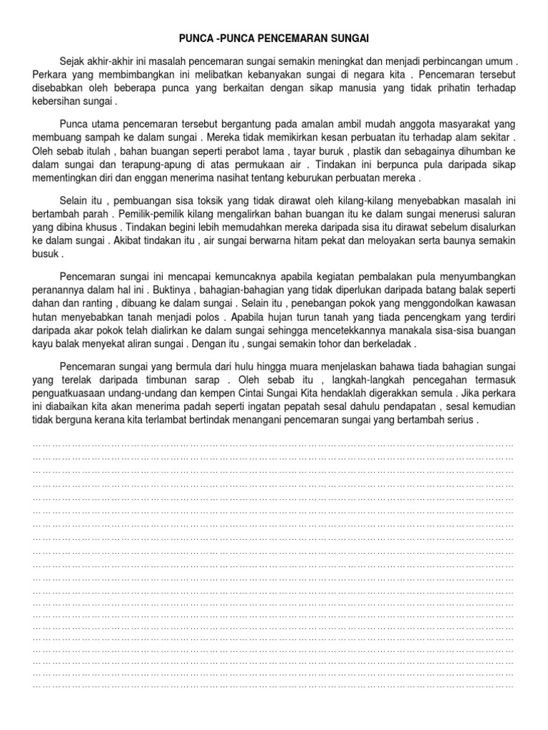 Penerangan Tentang Punca Punca Pencemaran Sungai