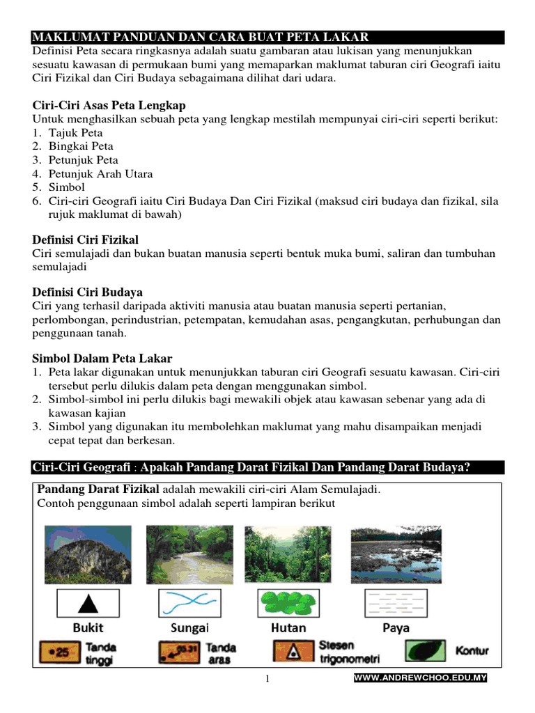 Pandang Darat Fizikal Dan Pandang Darat Budaya Peta Lakar Kerja Lapangan Tugasan Bumi Gemilang