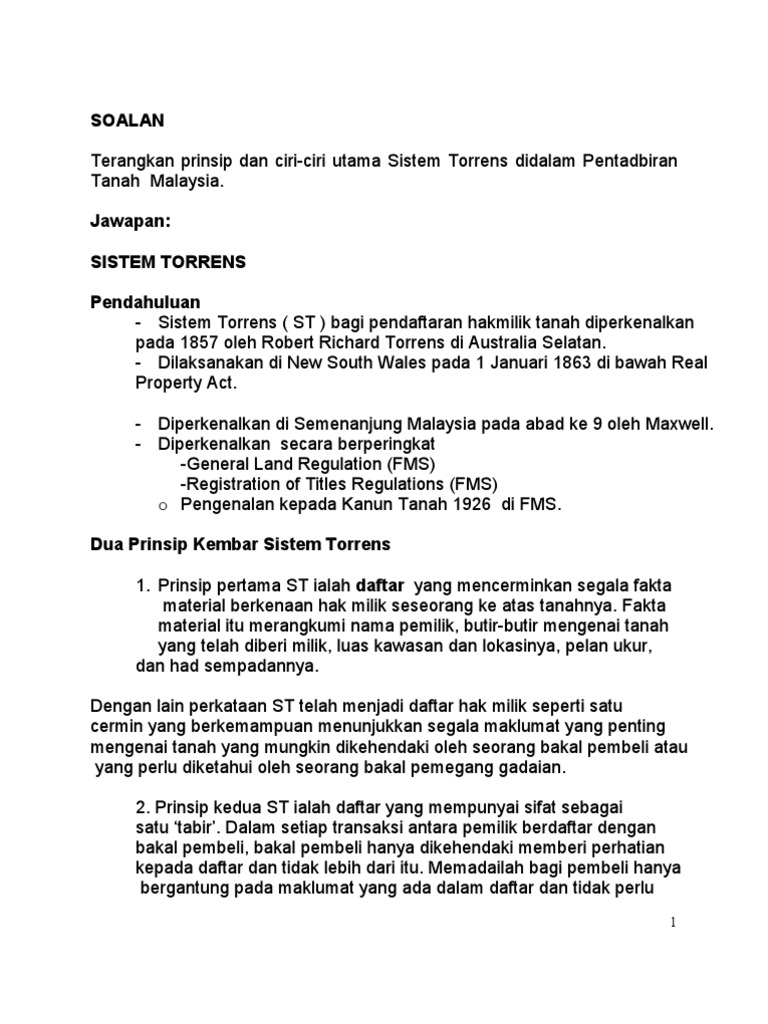 Kumpulan 1 Apa Yang Anda Perlu Tahu Mengenai Tanah Sebelum Sistem Torrens British Melaksanakan Pdf Document