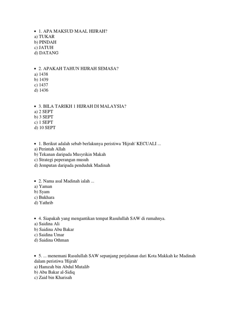 Contoh Soalan Kuiz Maulidur Rasul Malacca 2
