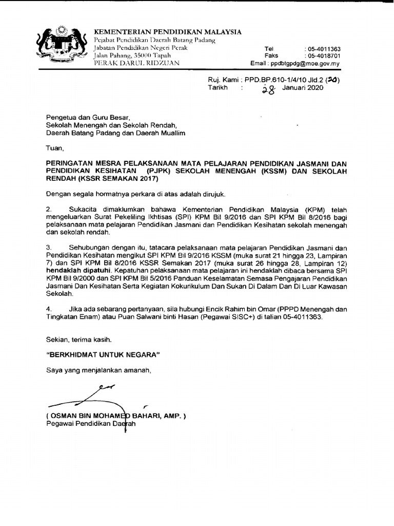 Pekeliling Panduan Keselamatan Semasa Pengajaran Pendidikan Jasmani Dan Kesihatan Serta Kegiatan Kokurikulum Pendidik2u
