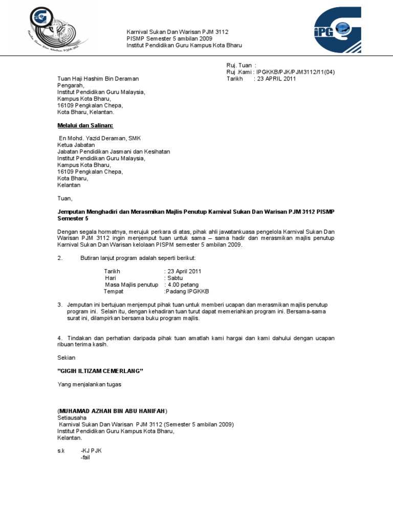 Contoh Surat Rasmi Jemputan Ke Program Surasmi G