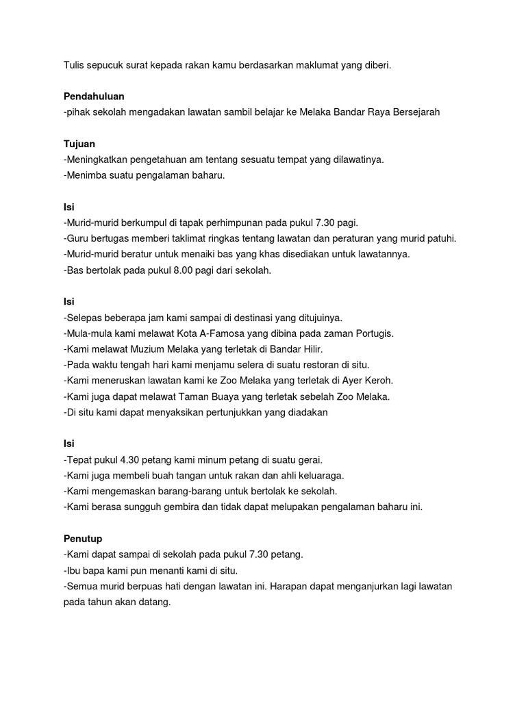 Contoh Karangan Surat Rasmi Lawatan Sambil Belajar Pt3 Arasmi