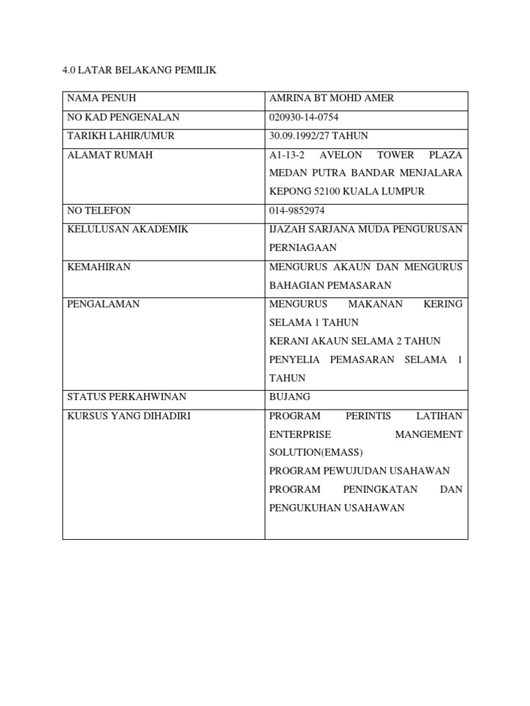 Doc Rancangan Perniagaan Full 1 Siti Fairuz Academia Edu