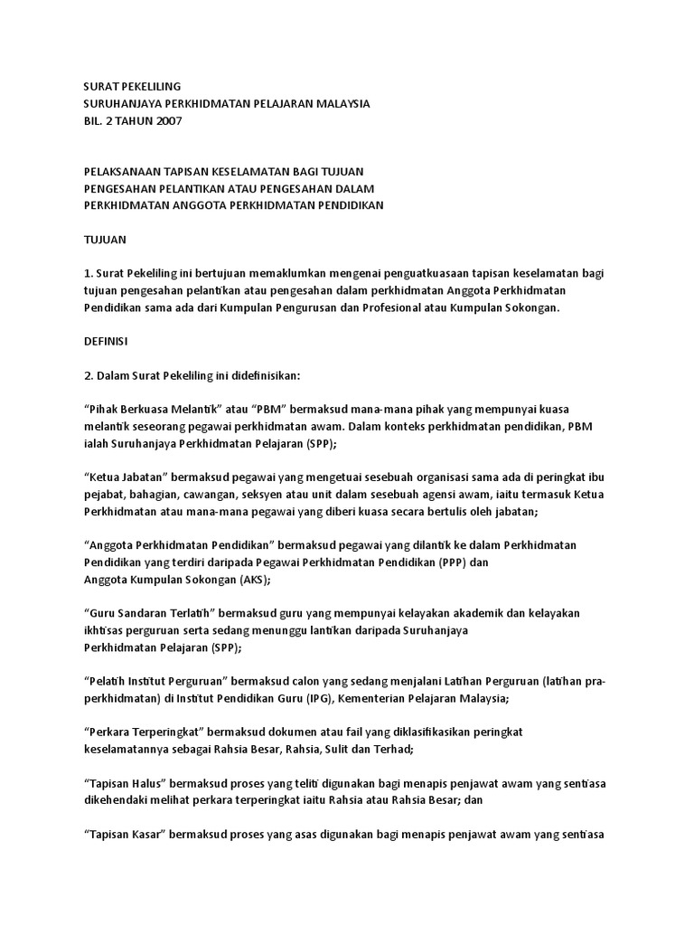 Surat Pekeliling Borang Tapisan Keselamatan