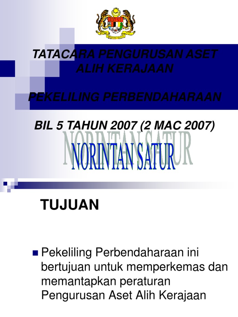 Taklimat Taklimat Pekeliling Perbendaharaan Pp Bil 5 Tahun 2007 Tatacara Pengurusan Aset Alih Kerajaan Tpa