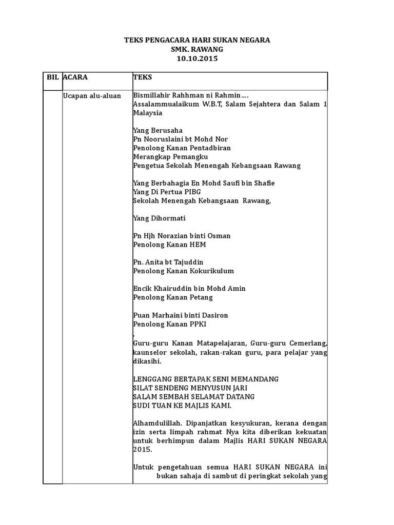 Kassim bin sarjo penyelaras program. Jutaan terima kasih kepada semua pihak dalam menjayakan majlis penyampaian anugerah dan hadiah itu tadi. Cara mendownload klik link dibawah tunggu 5 saat dan skip ad untuk muat turun t eks pengacara majlis sukan 1.