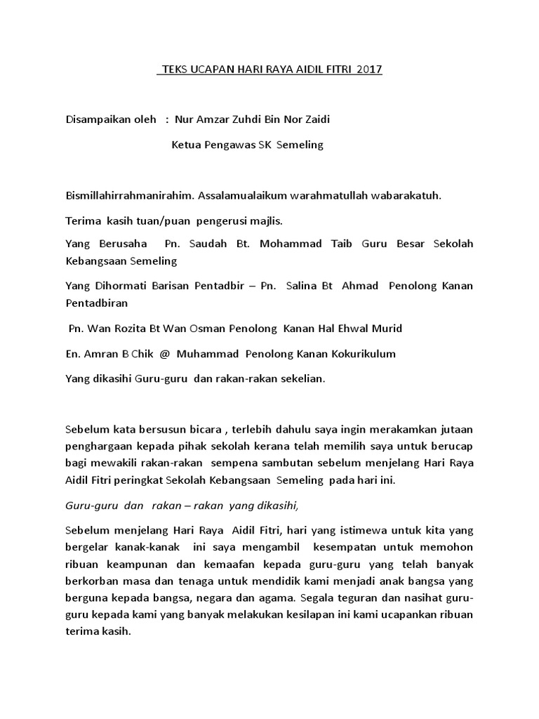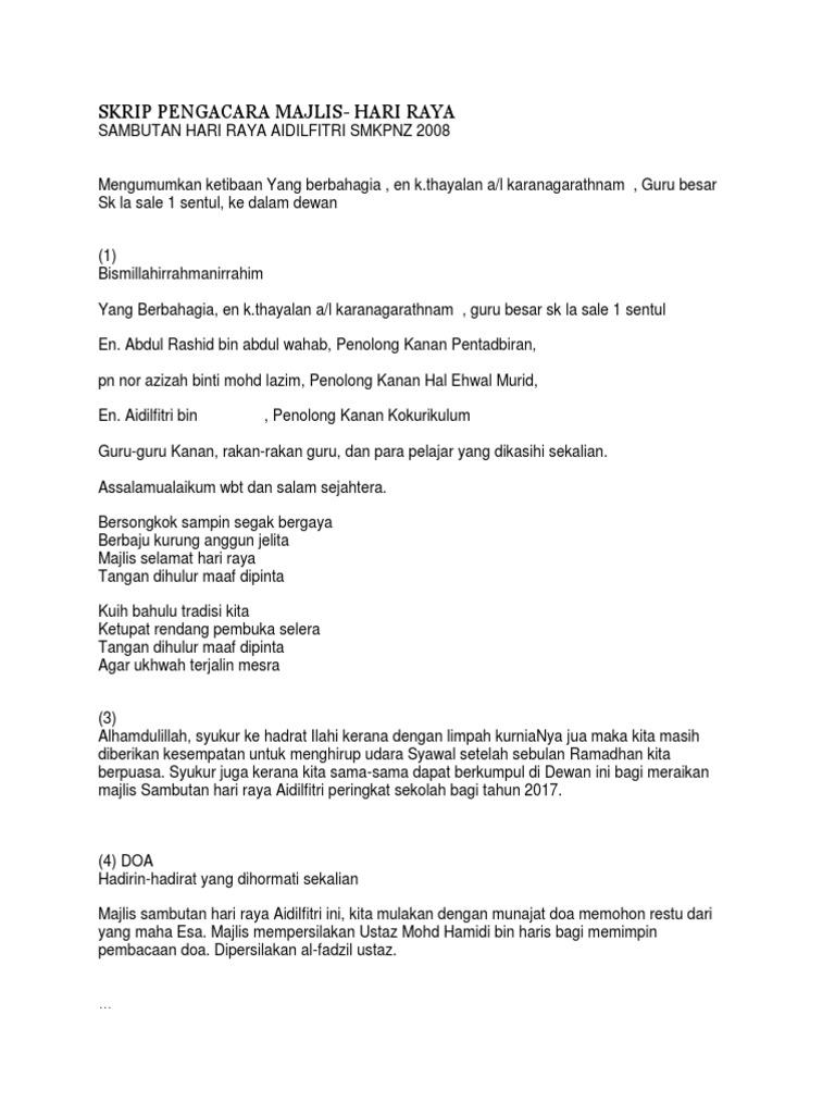 Teks Mc Sempena Majlis Hari Raya Aidilfitri 2013 In 2020 Teks Mathematics
