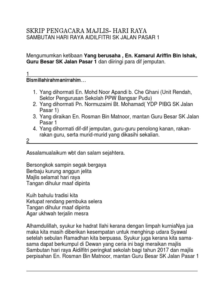 Skrip Pengacara Majlis Jamuan Hari Raya 20188