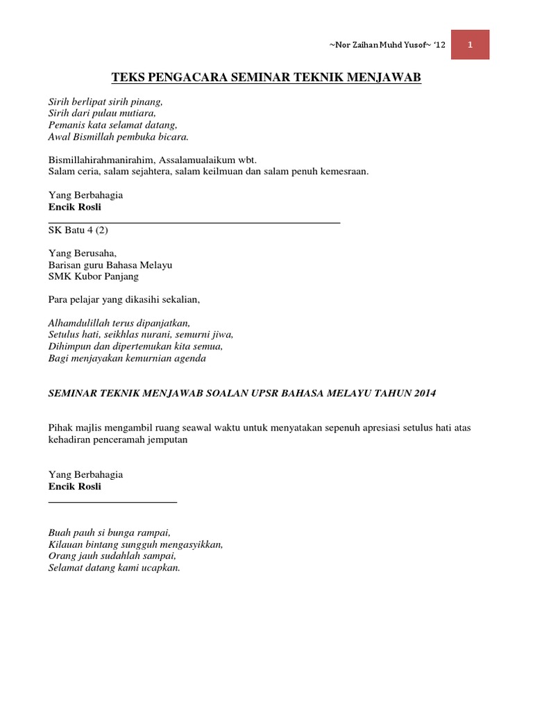 Doc Teks Ucapan Teknik Menjawab Yusnira Ya Akop Academia Edu