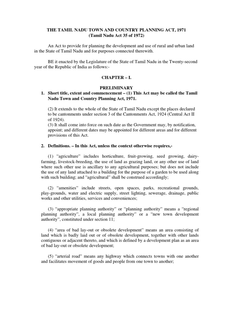 The Tamil Nadu Town Country Planning Act 1971 Tribunal Urban Planning