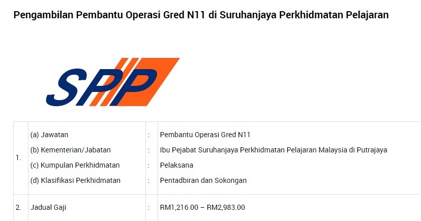 Kekosongan Jawatan Dalam Kementerian Pendidikan Malaysia Dan Pelbagai Kementerian Jabatan Pembantu Operasi Gred N11 Semakjawatan Com Jawatan Kosong Terkini
