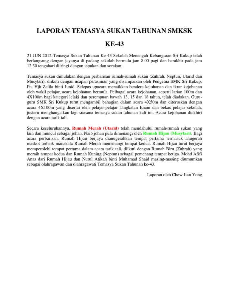 Contoh Laporan Sukan Tahunan