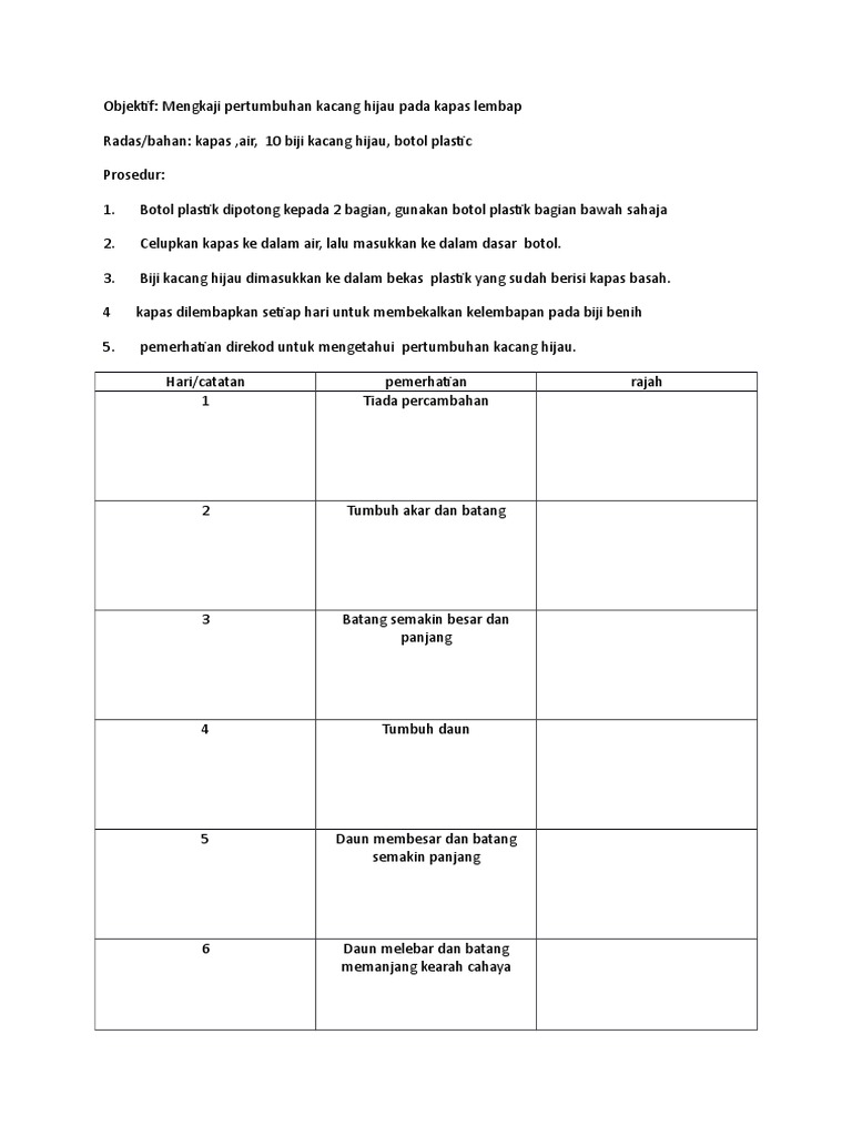 Cikgu Ladang Minggu Ke 5 Eksperimen Percambahan Biji Benih