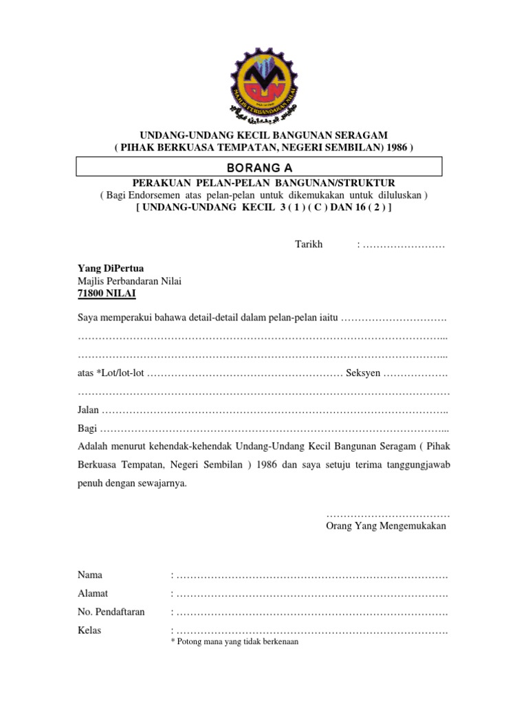 Senarai Semak Permohonan Bagi Pelan Bangunan Negeri Sembilan