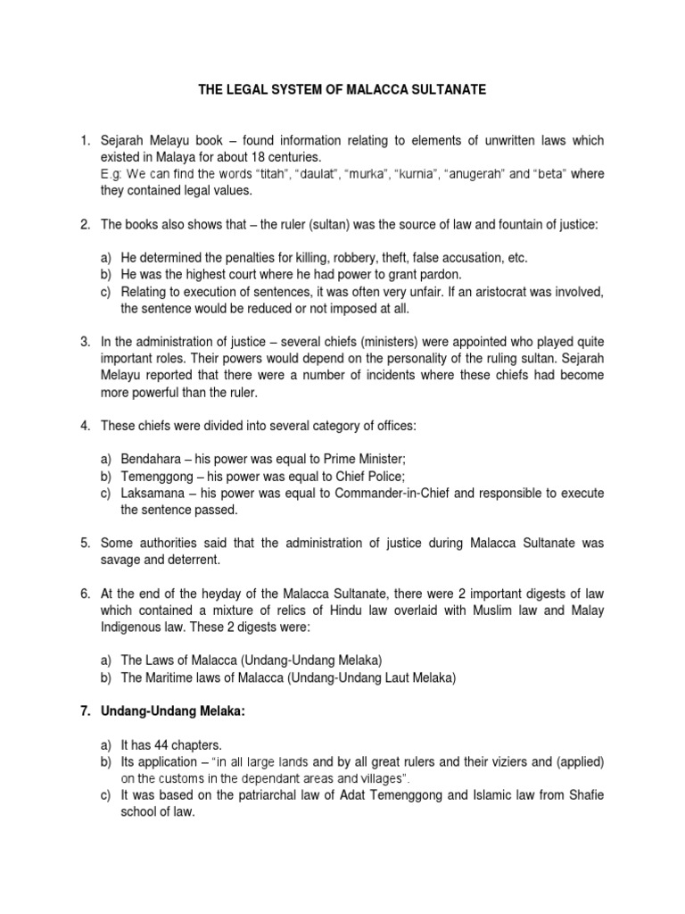 The Legal System Of Malacca Sultanate Crimes Crime Justice