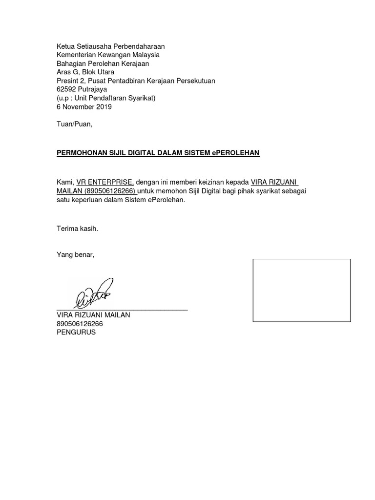 Format Standard Permohonan Agensi Mengenai Perolehan Ke
