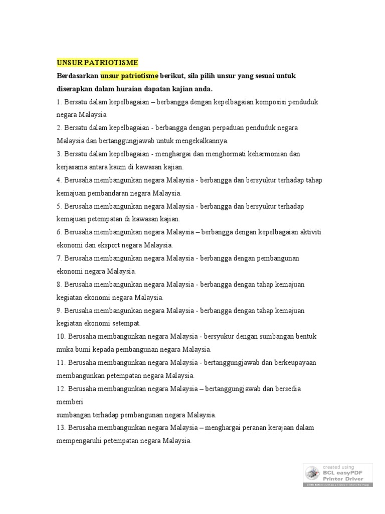 Rumusan Pengetahuan Nilai Unsur Unsur Patriotisme Dan Harapan 2018