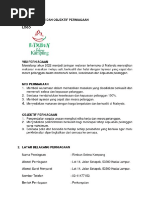 Visi Misi Dan Objektif Perniagaan Makanan Restoran